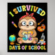 Affiche I Survived Six Seven Days Of School Cute Sloth Stu