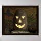 Les pommes de terre remplacent les citrouilles comme Jack O'lanterns dans l'Idaho. Une pomme de terre, sculptée et éclairée à la manière d'un citrouille d'Halloween, est assise sur un tas de spuds, dressé contre un sac à burlap. Le texte personnalisable "Happy Halloween" apparaît également. Vous pouvez modifier la police et la couleur du texte.