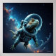 Ce composite numérique imaginatif place l'iguane dans un cadre différent. Le reptile semble être un astronaute, flottant sereinement dans l'immensité de l'espace, entouré d'une nébuleuse tourbillonnante, d'étoiles lointaines et de planètes. Ce mélange de nature et de science-fiction crée une image captivante et humoristique à la fois belle et inattendue.