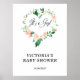 L'Affiche de bienvenue de Baby showers floraux It's a Girl Peach est une décoration magnifiquement conçue, parfaite pour ajouter une touche personnalisée à votre baby shower. Ce panneau présente une délicate forme de coeur au centre, entouré d'un élégant arrangement de fleurs de pêche, accentué de verdure douce. Le design floral doux, combiné au motif du coeur, crée une ambiance douce et festive, idéale pour accueillir une petite fille.
