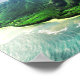 Awesome photo shot of the tropical island of Kauai Hawaii ! The islands mountains are a dark lush green color. Beautiful turquoise tropical sea water surrounds the Island The Sunlight pierces the white clouds in the dark blue sky and shines its chauffe-on the tropical island and sea.
