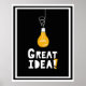 Élevez votre espace avec ce design captivant et inspirant. Contre un arrière - plan noir épuré, une lampe jaune rayonnante occupe le devant de la scène, symbolisant la brillance d'une grande idée. La lampe jette une lumière chaude, illuminant le nom de l'idée dans une élégante typographie. Il sert de rappel du pouvoir de la créativité et de l'innovation. Laissez ce design inspirer et éclairer votre environnement avec son énergie vibrante.