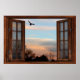 Fake Window Illusion - Flying Bird Silhouette Améliorez le décor de n'importe quelle chambre avec cette affiche pittoresque. Ce poster de fausse fenêtre offre une vue réaliste d'un oiseau volant près de votre fenêtre. Le cadre en bois artificiel à 2 lambris avec fenêtres est conçu en bois foncé et les panneaux de fenêtres sont teintés. Créé en haute définition (300 dpi), ce morceau peut être agrandi et sera toujours bien imprimé. Consultez mon magasin pour une grande variété d'affiches de faux fenêtres. Il semble magnifique dans un cadre standard sur n'importe quel mur.