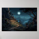 Illustration d'un sentier sinueux en pierre qui se termine dans un chalet oriental dans une verrière surplombant un lac de montagne au clair de lune. Il s'agit d'un autre design 100% original Snuggle Hamster.