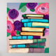 Affiche Illustration de livres et de fleurs Art numérique