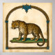 Un léopard aux taches abstraites, mis en évidence par un dégradé subtil de jaune et de marron.