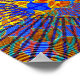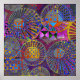 collage de motifs géométriques et beaucoup de cercles avec un mélange éclectique de couleurs, de formes et de motifs.