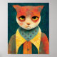 Affiche Illustration Portrait D'Un Triste Chat Ginger