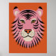 Affiche Illustration rétro de gros chat tigre rose et oran