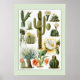 affiche murale d'illustration scientifique de cactus vintage. Idéal pour la décoration des chambres à thème du sud-ouest. Vert pâle et profond et teintes or.