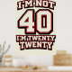 Turn 40 with humor and style! This bold, retro-inspired design features the funny phrase “I’m Not 40 I’m Twenty Twenty,” making it perfect for celebrating a milestone birthday with a lighthearted twist. The strong varsity-style typography and vintage aesthetic give it a standout look that’s great for party themes, decorations, or personalized creations.