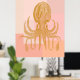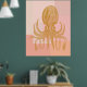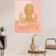 Une image amusante et vintage de pieuvre sur un arrière - plan de bloc de couleur rose et or.