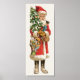 Illustration vintage de Noël de l'ère victorienne représentant un Père Noël à l'ancienne portant des jouets et un sapin de Noël. À l'origine, issue d'une découpe victorienne.