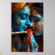 Une représentation époustouflante de Radha et Krishna dans un cadre serein et bucolique, entouré d'une faune et d'une flore animées. Krishna, jouant de sa flûte enchanteresse, rayonne de calme, tandis que Radha, avec son expression gracieuse, incarne la dévotion et l'amour