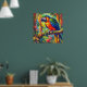 Affiche Impressionniste perroquet tropical Oiseau bleu ver