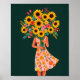 Cette impression artistique présente une peinture d'une femme portant un grand bouquet qui couvre sa tête.