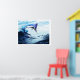 Un beau marlin bleu éclate à travers une vague dans un saut spectaculaire.