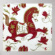 Poster conçu avec mon dessin de l'encre rouge de l'année chinoise du cheval et de la feuille d'or.