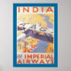 Affiche vintage pour les vols d'Imperial Airways vers l'Inde.