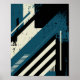 A striking abstract geometric design featuring bold diagonal stripes in Petrol blue, beige, and black tones. The composition combines clean, angular shapes with a rough, weathered texture that gives it a strong industrial and mechanical aesthetic. Subtle imperfections, scratches, and distressed areas add depth and character, blending precision with raw artistic energy. The overall effect evokes movement, structure, and urban grit in a modern, minimalist form.