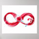 Infinity symbole of continuous stream of red pouring into glass glass glass on white background.