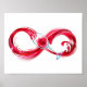 Infinity symbole of continuous stream of red pouring into glass glass glass on white background.