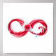 Infinity symbole of continuous stream of red pouring into glass glass glass on white background.