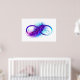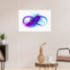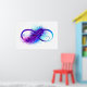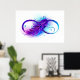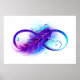 Infinity symbole with a beautiful feather painted in purple and blue bright colors on white background