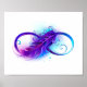 Infinity symbole with a beautiful feather painted in purple and blue bright colors on white background