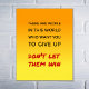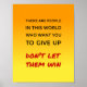 This inspirational poster has a quote to encourage you to think positively and be strong. The text is "THERE ARE PEOPLE IN THIS WORLD WHO WANT YOU TO GIVE UP. DON'T LET THEM WIN" - in black and deep red, on a bright yellow and orange background.