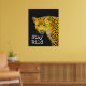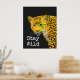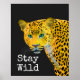 Poster de léopard aux yeux vert sauvage de séjour noir tendance.