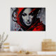 A striking work of art! This female portrait combines facial realism with explosive red and black paint splashes. Penetrating eyes and bold features create a mysterious and elegant atmosphere. Perfect for high-end decor, studios, and lovers of urban and contemporary art.