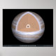 Cette image illustre la structure interne de Jupiter. La couche externe est principalement composée d'hydrogène moléculaire. À des profondeurs plus grandes, l'hydrogène commence à ressembler à un liquide. À 10.000 kilomètres sous la couche de nuage de Jupiter, l'hydrogène liquide atteint une pression de 1.000.000 bar avec une température de 6.000°K. À cet état, l'hydrogène se transforme en une phase d'hydrogène métallique liquide. Dans cet état, les atomes d'hydrogène se décomposent en produisant des protons ionisés et des électrons semblables à l'intérieur du Soleil. En dessous, il y a une couche dominée par la glace où "glace" désigne un mélange liquide souillé d'eau, de méthane et d'ammoniac sous des températures et des pressions élevées. Enfin, au centre se trouve un noyau rocheux ou rocheux de glace pouvant atteindre 10 masses terrestres.