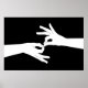 Deux mains blanches faisant le signe ASL pour "interpréter". Les mains sont montrées contre un arrière - plan noir.