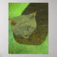 Cette affiche d'art présente la réimpression d'un dessin d'Irina le chat assis sur l'herbe.