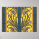 Affiche Iris Fleur Art Nouveau Vitrail Bleu Or