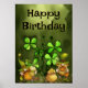 Lucky Four Leaf Clovers et Irish Leprechaun Gnomes Happy Birthday Poster