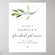 Cette pancarte de bienvenue pour la fête de mariage présente un élégant feuillage de verdure à l'aquarelle et un design minimaliste moderne. Cette affiche de bienvenue est l'ajout parfait à votre jardin extérieur ou à votre événement de fête de mariage classique.
