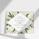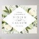 Notre collection de fleurs d'ivoire à mariage florale présente une verdure d'aquarelle délicatement peinte, des feuilles d'eucalyptus, un feuillage botanique vert et des fleurs de pivoines blanches et d'ivoire. Personnalisez cet élégant panneau d'accueil de mariage avec vos noms et date mariage niché dans un cadre géométrique losange allongé.