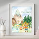Affiche J'adore le camping Animaux de la forêt enfant aqua