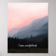 Je suis confiant. Cette affirmation positive est écrite en écriture sur un paysage de montagne serein dans les tons rose et vert foncé. L'affirmation peut être modifiée à votre goût - il suffit de modifier le texte. La taille des affiches peut être choisie sur le côté droit aussi. Ce motif est aussi disponible en carte postale et tapisserie. Photo de fond par D. Hoefler - image du domaine public.