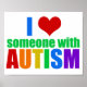 J'aime quelqu'un avec une affiche d'autisme. Montrez votre soutien à la personne autiste spéciale dans votre vie. Un grand cadeau pour les parents d'un enfant ayant des besoins spéciaux atteint d'autisme ou de syndrome d'Asperger. J'aime mon fils ou ma fille autiste. Aussi un beau cadeau pour une soeur ou un ami.