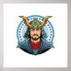 Portrait of a Japanese samurai warrior or shogun in helmet and armor