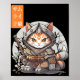 Affiche Japanese Samurai Warrior Kawaii Cat Anime Lover