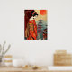 Cette affiche magnifique et élégante du Japon présente une belle geisha, des temples de pagode et un grand soleil rouge - le symbole du Japon.