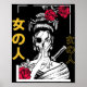 Affiche Japonaise Samurai Floral Guerrier Geisha Femme Tok