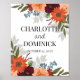 Un design moderne et simple présente des fleurs de jardin d'automne aux couleurs de feuilles bordeaux, orange et vert avec du texte personnalisable. Personnalisez le modèle avec les détails de votre mariage souhaité, les polices, etc.