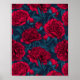 Affiche Jardin de pivoine rouge sur bleu foncé
