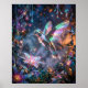 Un colibri radieux plane à l'intérieur d'un jardin de tension futuriste, conçu à partir de plumes métalliques, de circuits lumineux et de traînées d'ailes lumineuses figées en mouvement. Des tons roses, cyan, émeraude, violets et dorés scintillent sur sa forme aérodynamique minuscule. Des fleurs néon, des vignes électriques, des lumières de pollen flottantes, des feuilles réfléchissantes, une brume douce et des silhouettes de lignes d'horizon lointaines créent un sanctuaire magique de haute technologie. Ce design d'oiseau élégant combine la vitesse, la beauté et la fantaisie moderne, ce qui le rend parfait pour les chambres à coucher, les studios, les bureaux et les cadeaux pour les amateurs de colibris.