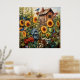 Affiche Jardin de tournesol 3 Maisons d'oiseaux Oiseaux bl